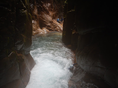 青い水、ハングし狭まったゴルジュ、灰色のCS,CS裏に隠された滝とそのホワイトウォーター...。最高に威圧的で神秘的な空間が待っていました。