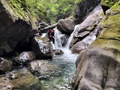 一息ついて下降はキャニオニングで。死亡事故の多くはキャニオニングで起きているのでここからが核心と思って行きます。